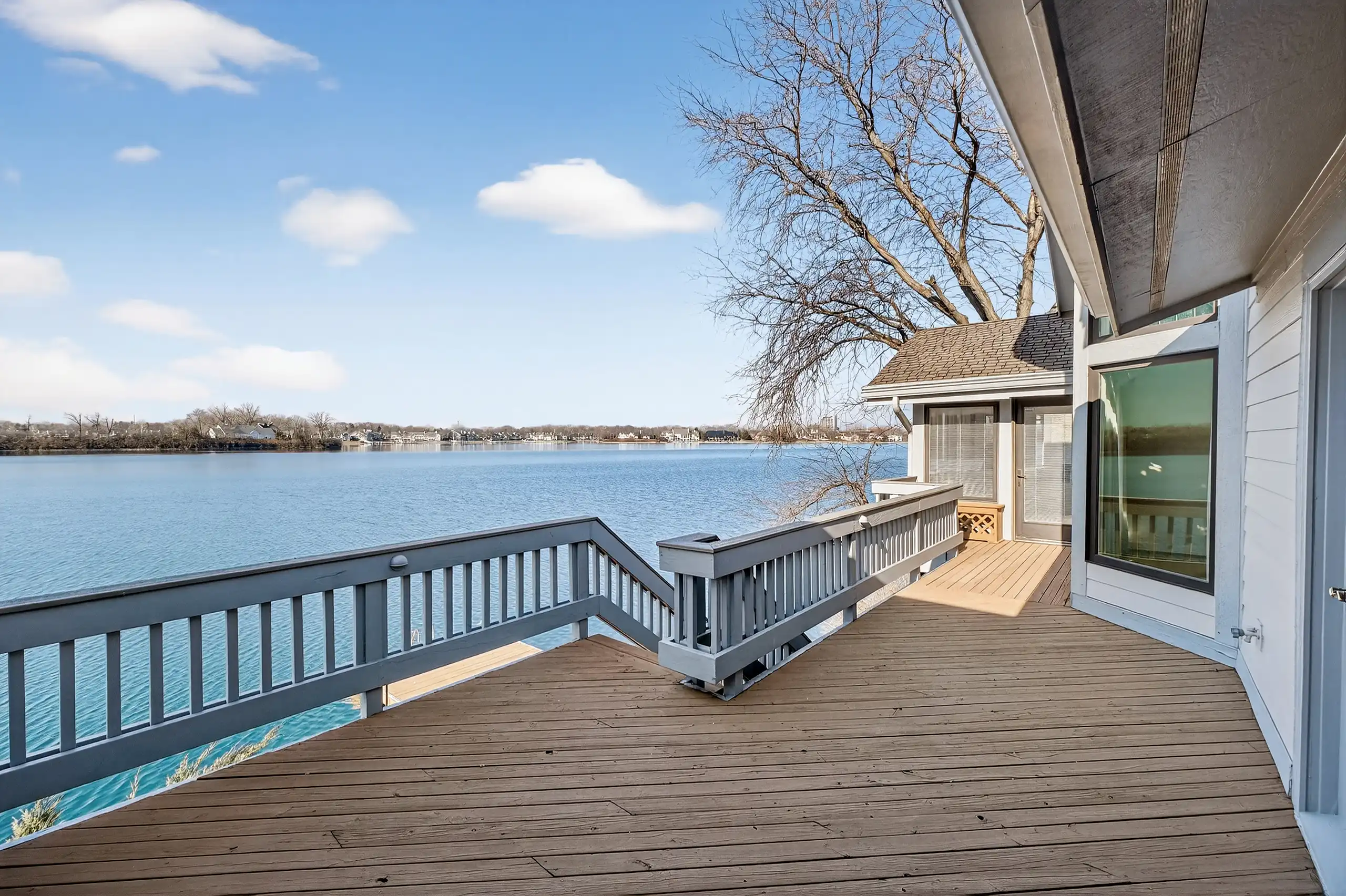 This property sits on 0.22 acres of lakefront land with private dock access, meaning you’re not just looking at the water, you’re living on it. The views extend across the lake to estate homes in the distance, creating a sense of spaciousness that’s honestly hard to find within such easy reach of downtown Indianapolis.
