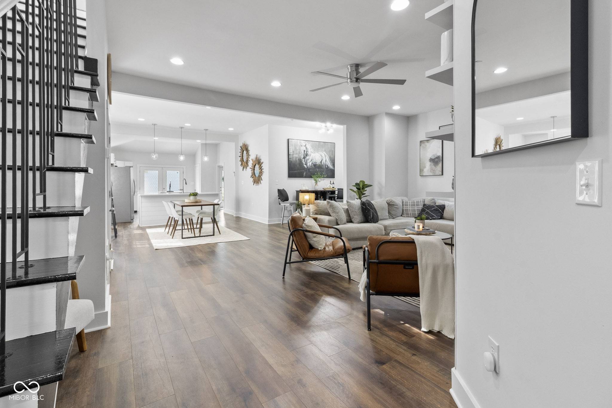 Beautifully updated 4-bedroom, 3.5-bath home near the Holy Cross neighborhood and just minutes from Bottleworks, Mass Ave, and downtown Indianapolis. The open floor plan showcases a modern kitchen with stylish finishes, a spacious living area, and dining space ideal for entertaining. Upstairs, the primary suite includes a walk-in closet and ensuite with dual sinks and a walk-in shower. Two additional bedrooms are also upstairs and share a large bathroom. A main-level bedroom with ensuite and oversized shower (currently staged as an office) provides flexibility for multi-generational living. The proximity to major hospitals also makes this property an excellent opportunity for investors interested in short-term rentals or mid-term leases for traveling professionals. The upper-level loft is perfect for a TV room, hobbies, or a home gym. Outdoor living shines with a large covered front porch and a private, fenced backyard with a spacious deck. A two-car garage plus one additional off-street parking spot is a rare find in this area. Conveniently located near top dining, shopping, parks, and entertainment.